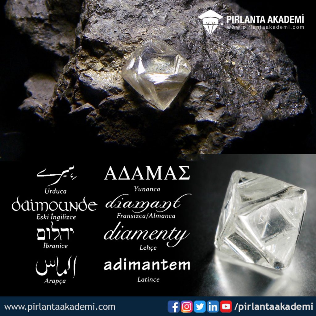 Elmas sözcüğünün kökeni Yunanca Adamas’tan gelir. Fethedilemez anlamına gelen, yıkılmaz ve güçlü olanı tanımlayan bu kelime zamanla diamant kelimesine dönmüştür. Adamas kelimesi ilk çağlarda çakıl taşları ve benzeri kesicilerle çizilemeyen elmasın sertliğine atıfta bulunuyor.