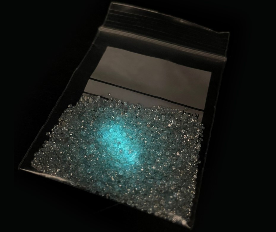 Laboratuvarımıza gelen küçük boyda pırlantaların (mele) özel ışık altında HPHT sentetik olduğu tespit edilmiştir. Sektörde küçük sentetiklerin genelde CVD olduğu düşünülse de aslında büyük çoğunluğu HPHT yöntemiyle üretilir. En yoğun üretim Çin’dedir. Çıplak gözle veya Morötesi – UV ışık altında anlaşılması imkansızdır. MDI Laboratuvarında sadece çıplak değil mücevher üzerindeki taşlar da çok kısa zamanda, %100 tespit edilebilir.
